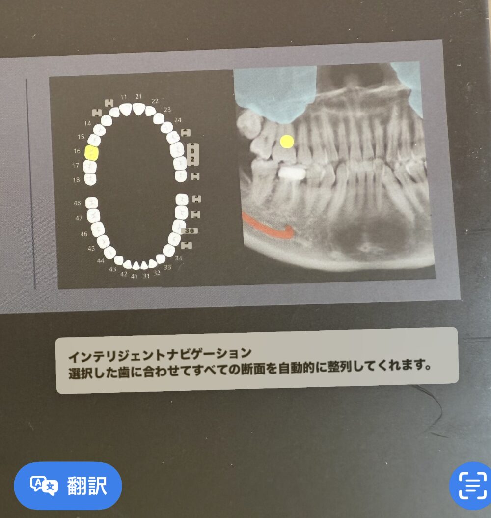さらに「インテリジェントナビゲーション」機能では、治療中歯を自動的に関連断面を表示させます。