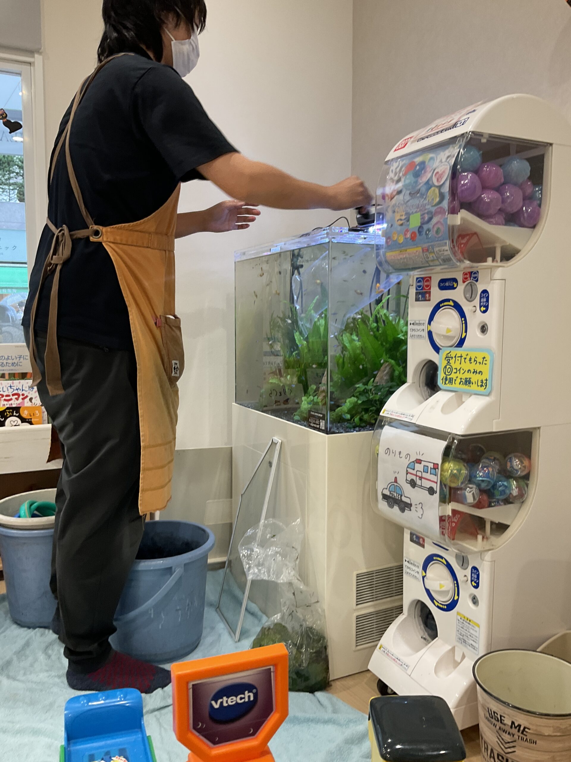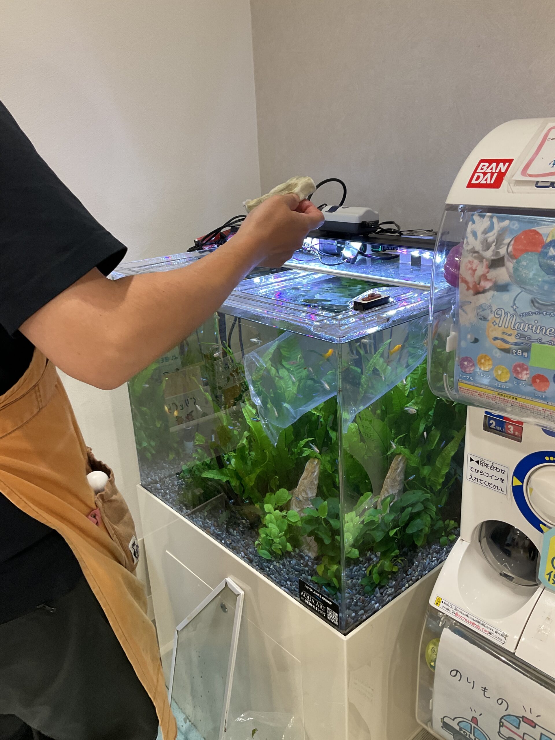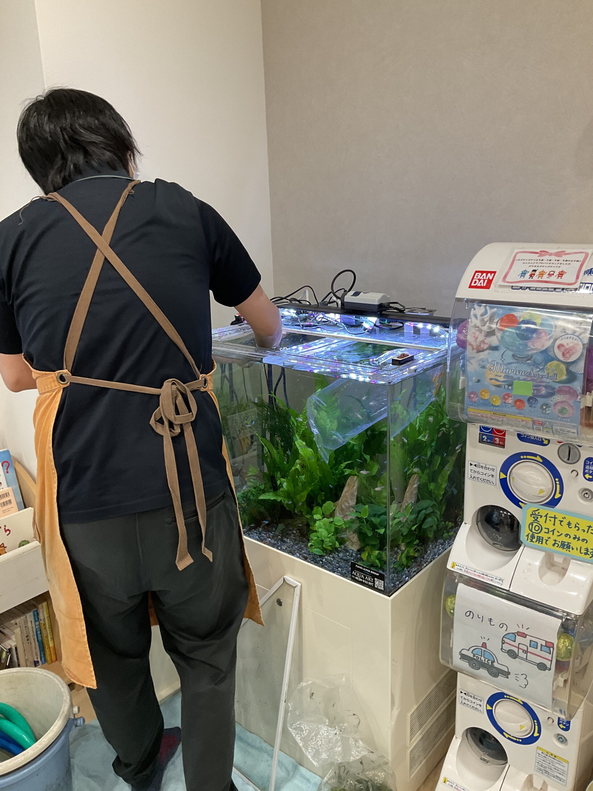 さて、一か月に一度の水槽のメンテナンスのお兄さん!