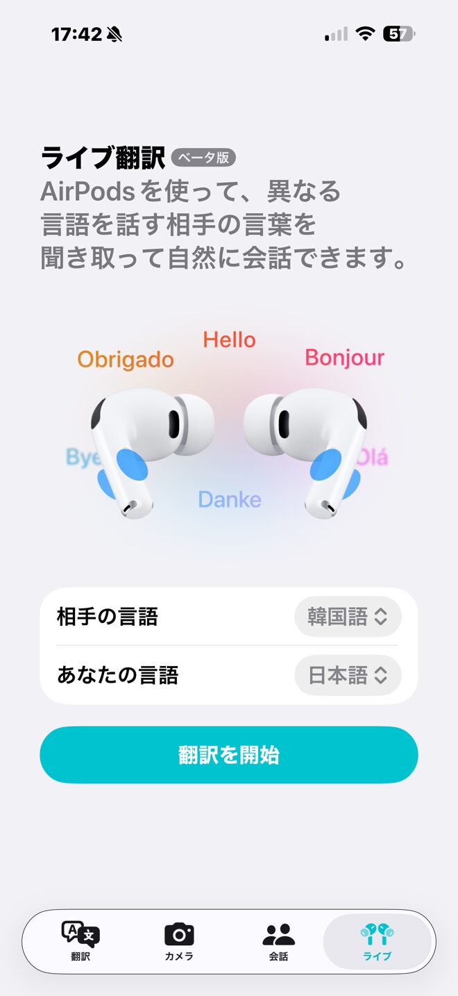 今回購入した、iPods PRO3は、ライブ翻訳機能があります。