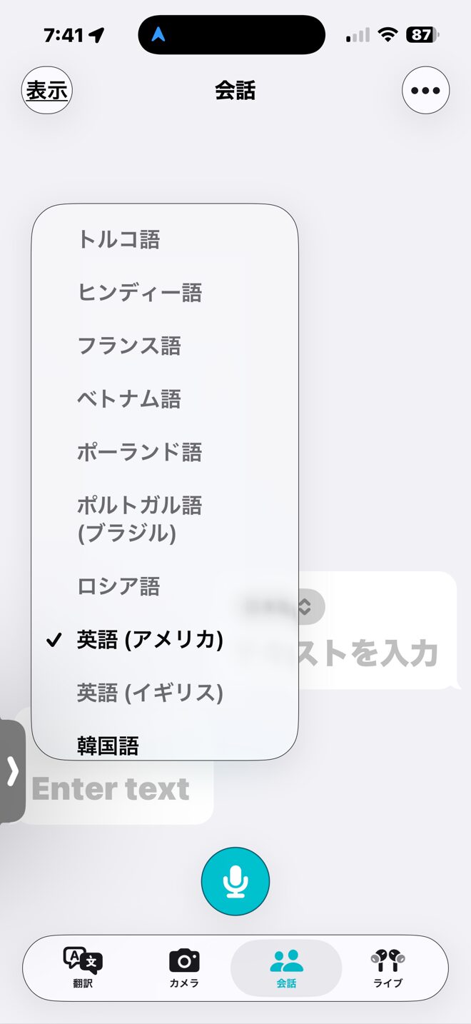 患者さんの自分の間において、翻訳ソフトの会話機能をタップする