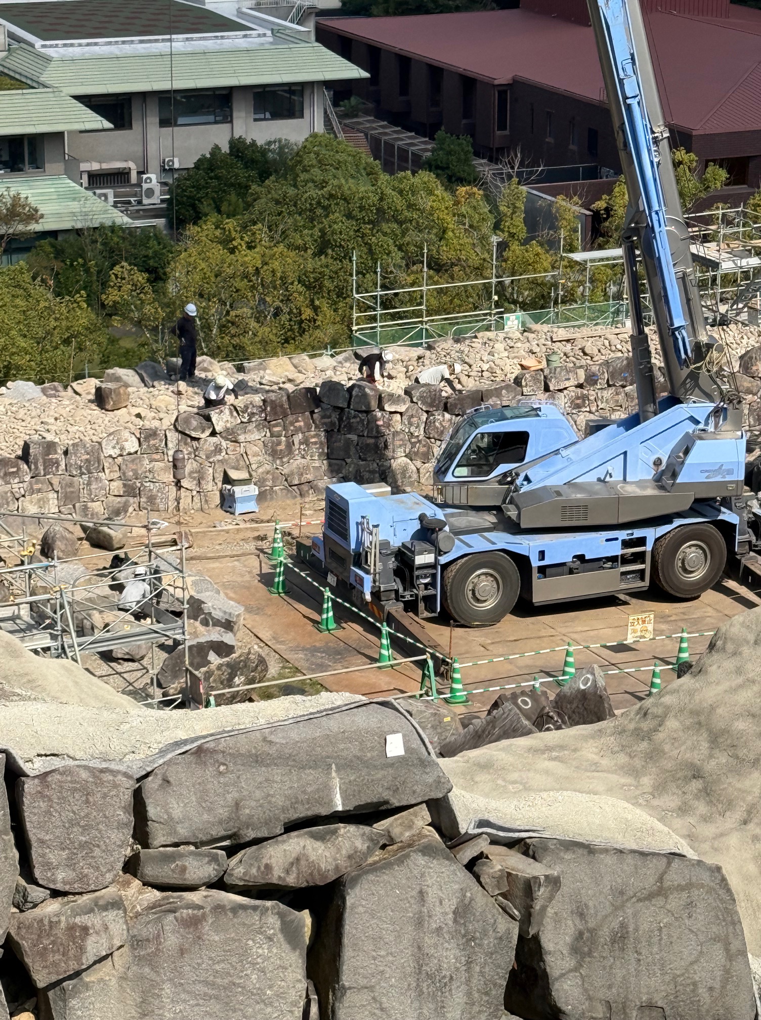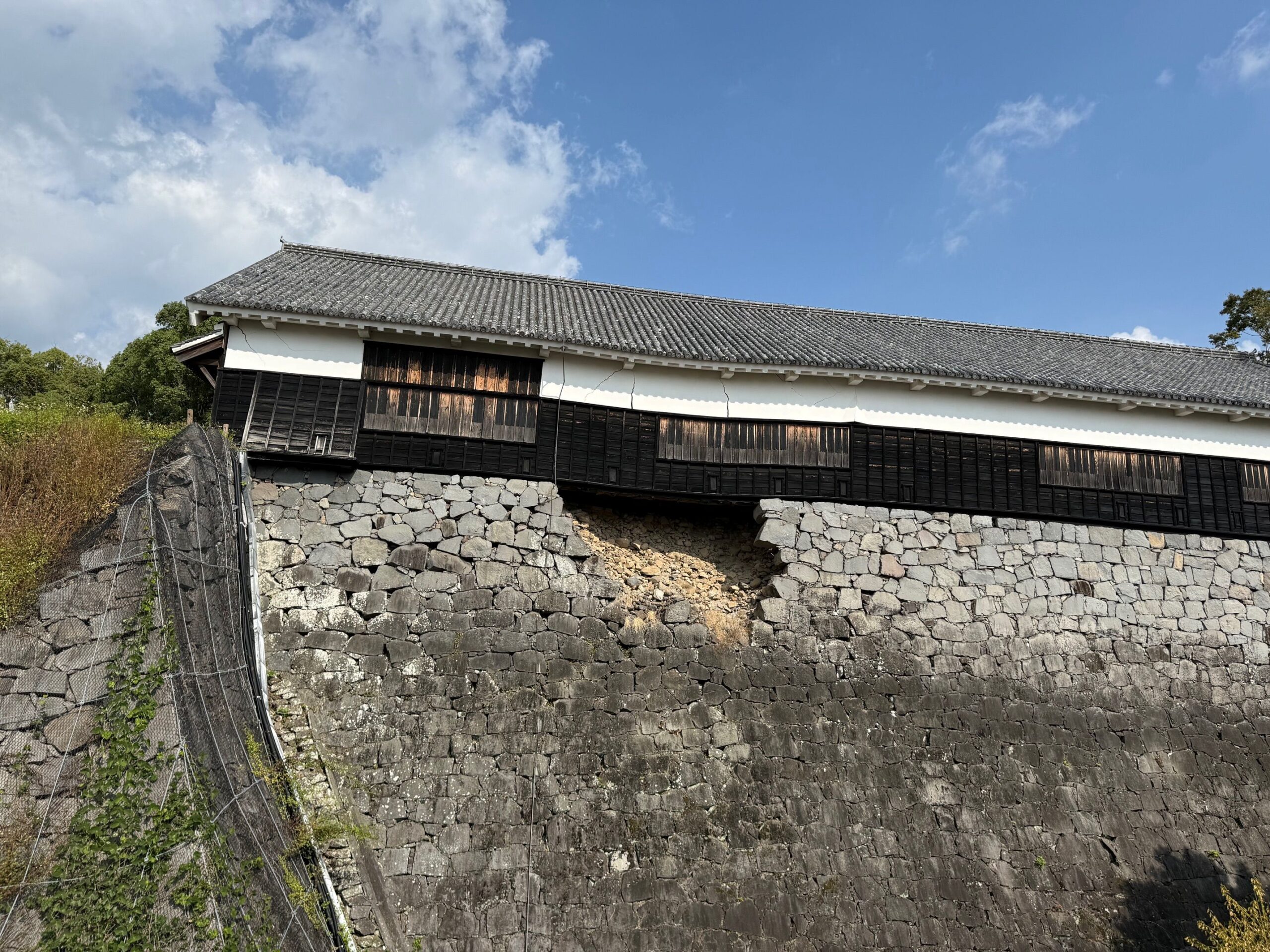 熊本地震から数年が経ち、主要部分は復旧していたものの、石垣には震災の爪痕がくっきりと残っていた。