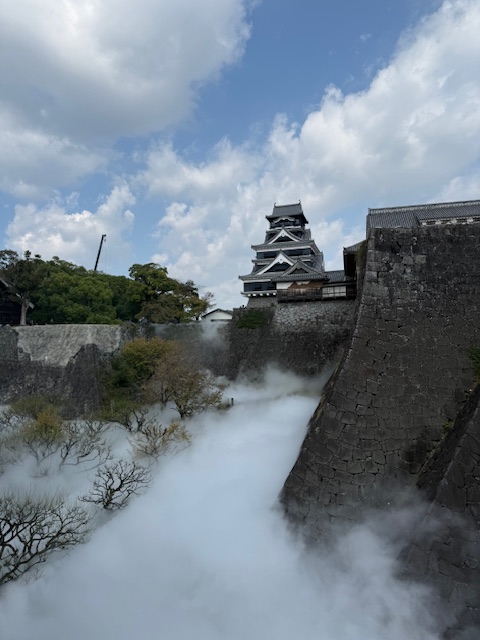 展望台からは、人工雲海に包まれる熊本城が見渡せた。