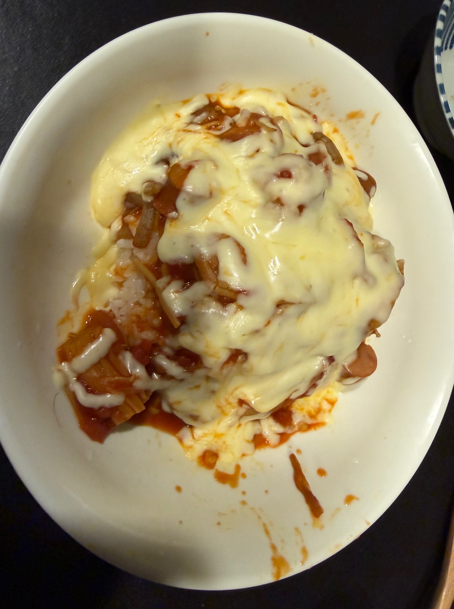 その上に温めたラタをかけて、チーズをひとつまみ。