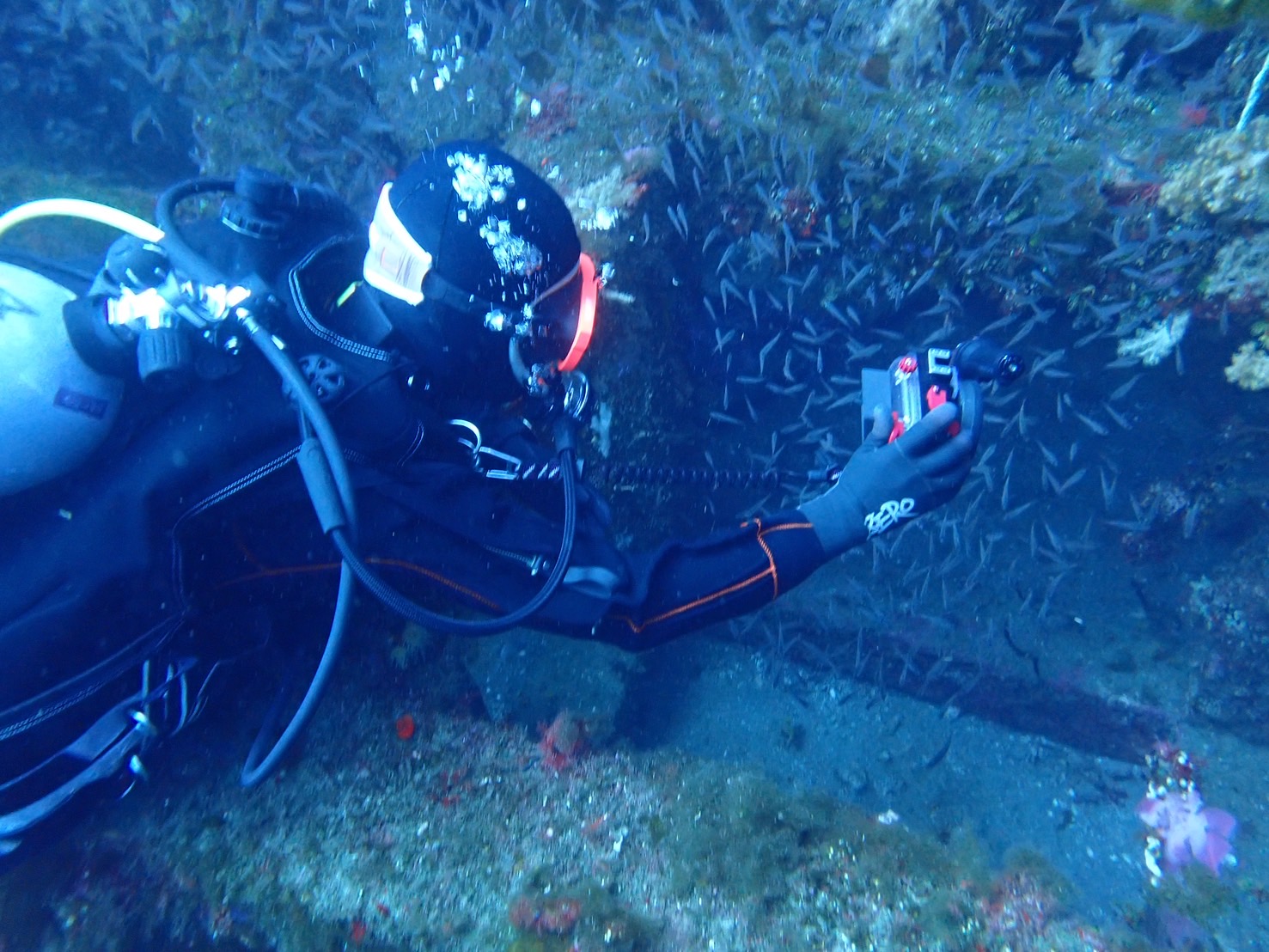 冬のダイビングは、水温14度 日中の陸は、8〜10度